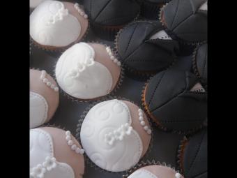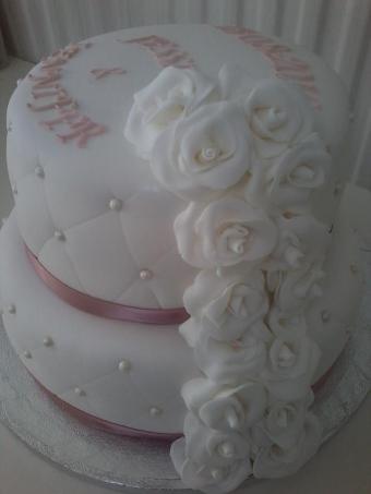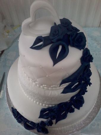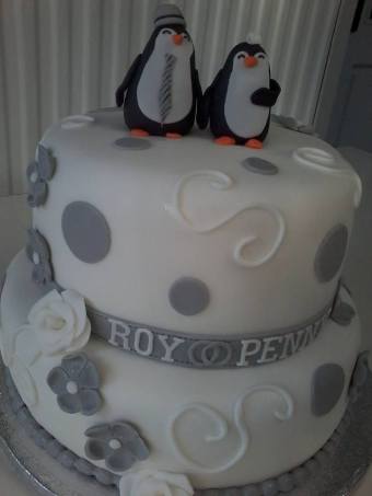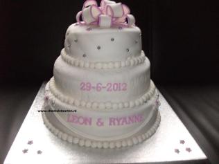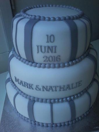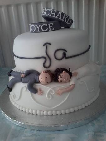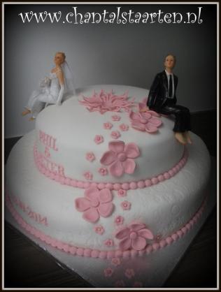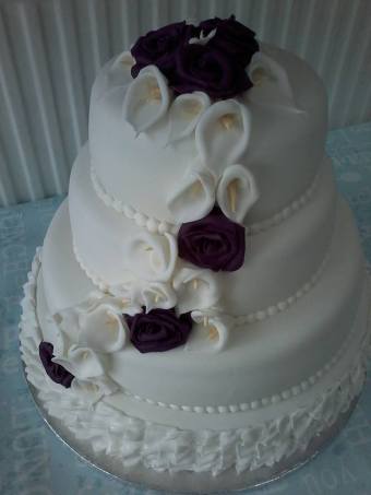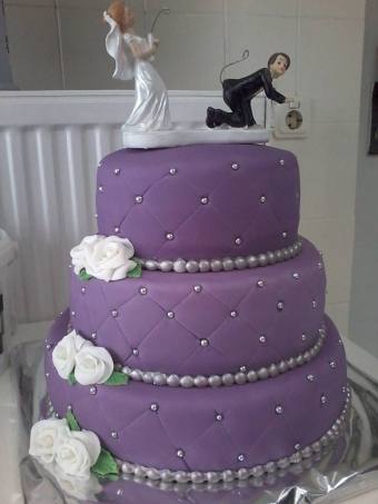 Paars, witte rozen en caketopper bruid met hengel `grappig`